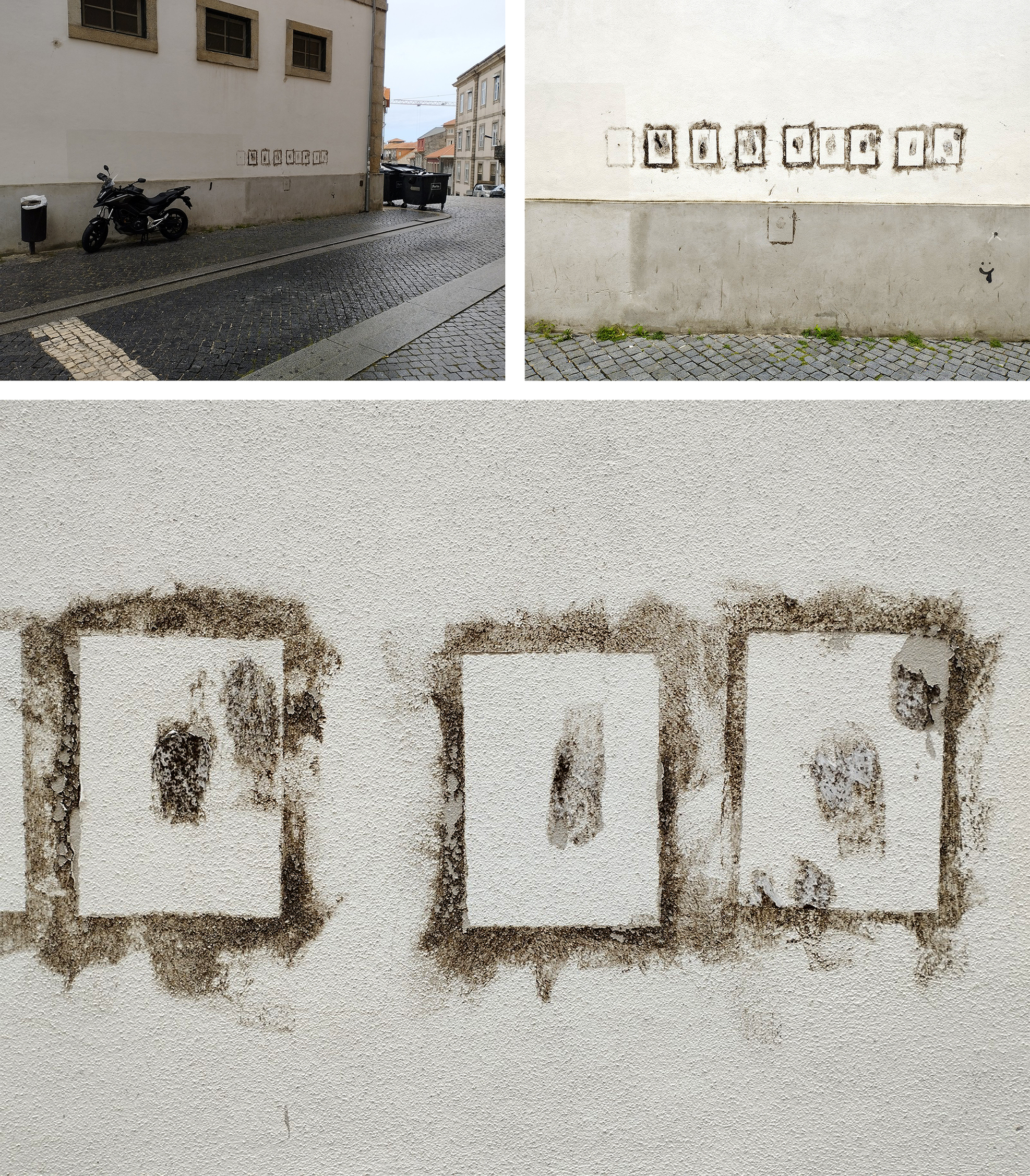 Figs 20/21/22: Photos of grime accumulated by the glue left behind from posters removed from a wall, porto, dimensions variable © Michael Croft
