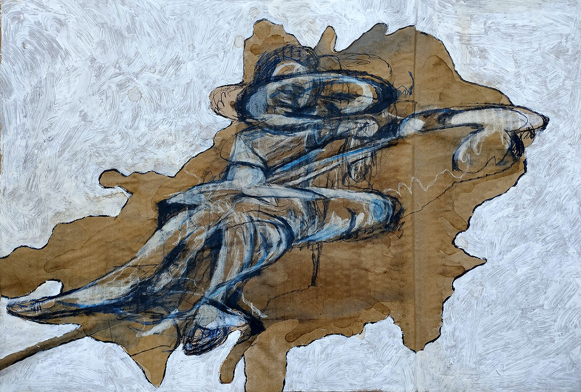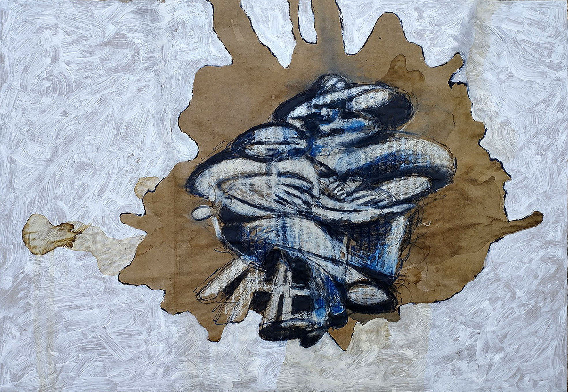 Fig 15: Father image. Ink, crayon, coffee, white acrylic primer on corrugated cardboard, 55 x 35cm, attributed to M.