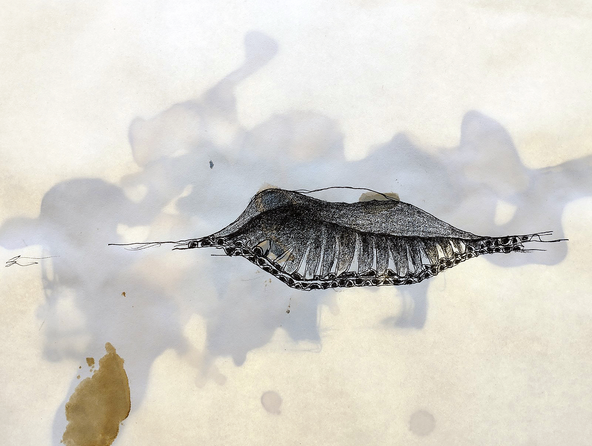 The simple overlaying of an ink sketch of the aperture that the coffee has opened as shown in Figure 30, above, with the wedding sketch, Figure 3, photographed against light, reads as a more complex situation, Figure 31.