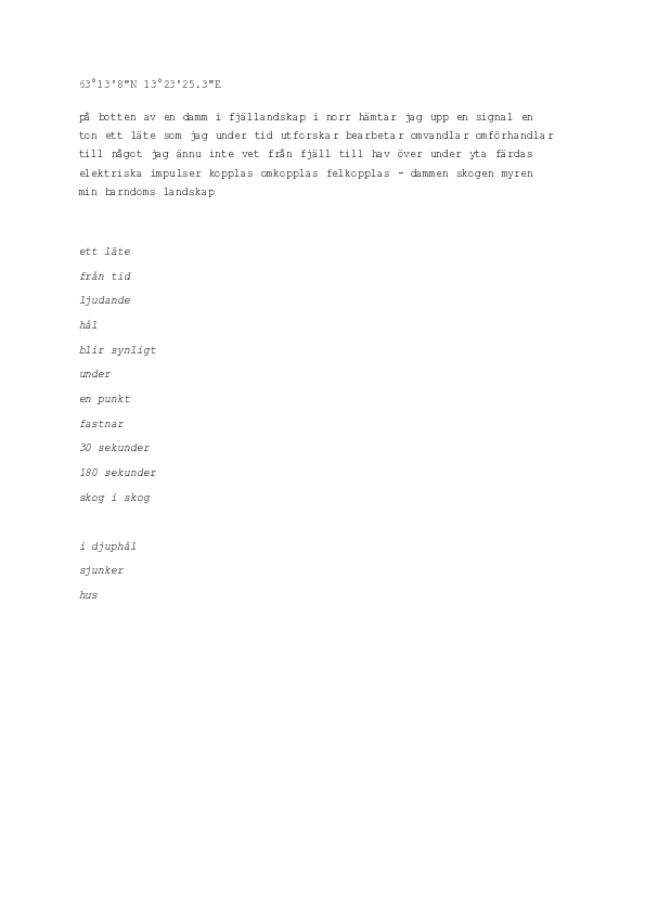 från fjäll till hav över under yta färdas elektriska impulser kopplas omkopplas felkopplas dammen skogen myren vilken röst? den första.