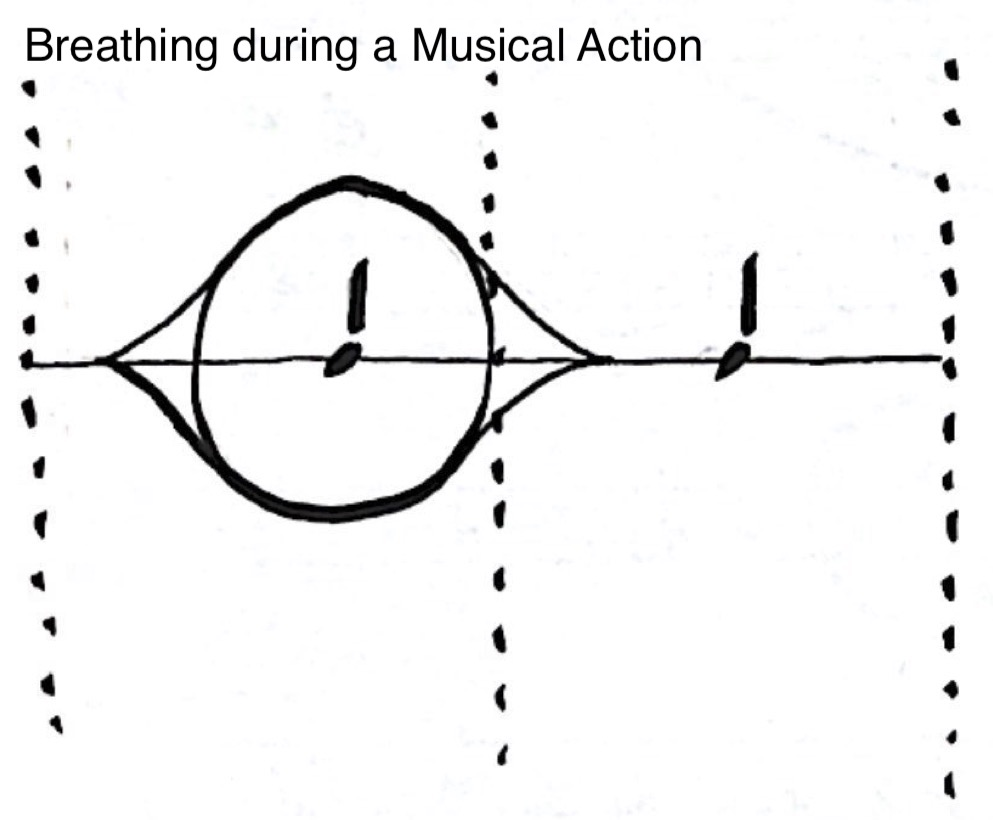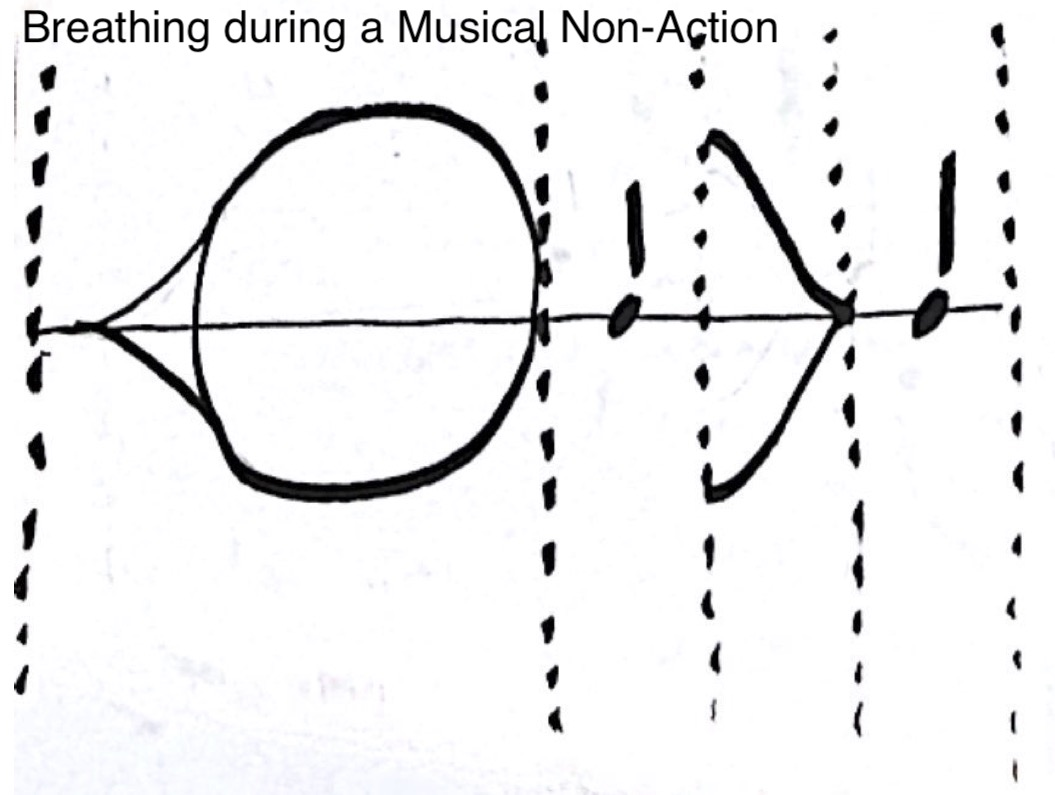 In these exercises I played one note over and over again imagining that this note is “pulled down” by the gravitational force and then where I did the same but imagining that the note is “fleeing” the force. Another practise was to do the same where I played with “filling the room” (breathing in) and “clearing the room” (breathing out).