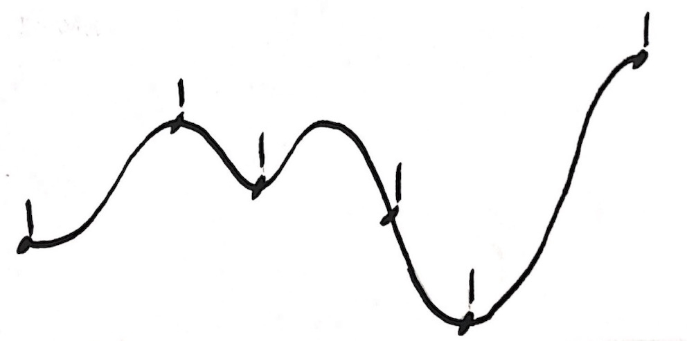 “If you channel and follow the energy then it doesn’t matter if you play/move or not. There will be an aura that you can communicate to the audience.” What she said is the opposite of the idea of “producing” and “creating” in order to make an artistic statement during a performance. The musical non-action is equal to the musical action. In my practice I did the same on the drums. I imagined a line that flows in the 3 dimensional room and tried to follow this line musically when I was improvising. Also when I was not playing I tried to maintain the energy and tension.