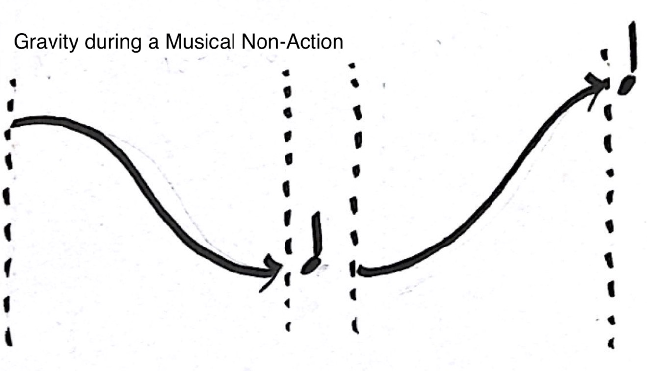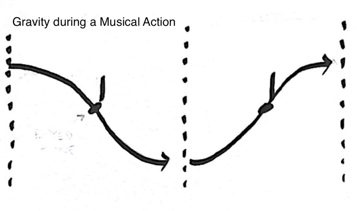 This term informs about the energy that “pulls” you down to the ground and is always present. You can move with or against gravity. Moving against gravity causes tension and moving with gravity causes release. The decision whether you move with or against gravity is up to the performer. The interplay with gravity can be expressed in tempo (decreasing and increasing) and weight (heavy and light). In my project gravity is present in both musical actions and non-actions.