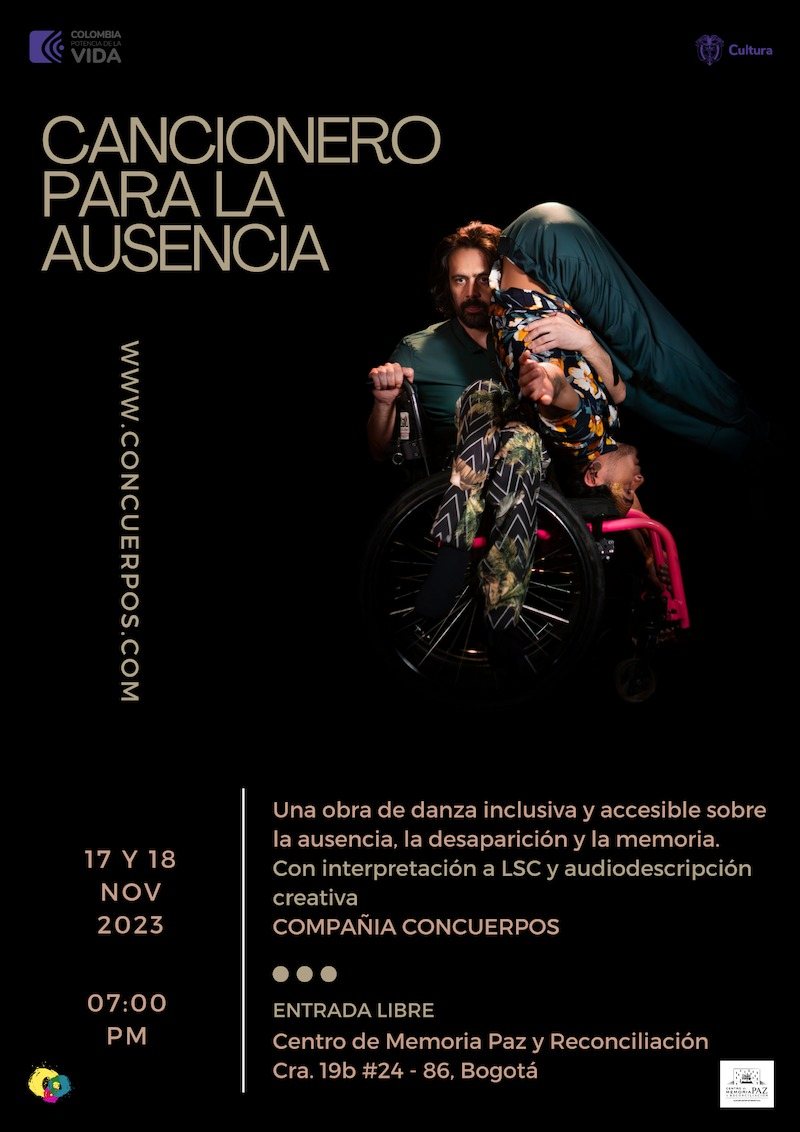 En esta exposición puedes encontar la documentación de la creación de la obra CANCIOENRO PARA LA AUSENCIA de la compañia de danza inclusiva ConCuerpos, la compañía pionera de danza contemporánea en Colombia que incluye bailarines con y sin discapacidad en su trabajo creativo.