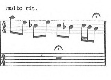 For the same purpose of coordinating dance and music, the endings of each section allow some rhythmic flexibility. In general, the end of a section contains a monodic part, often accompained with a diminuendo and ritardando, that ends in a fermata, long sound or silence [9]. This fact gives freedom to vary the length of each section to fit the choreography. An exception for this rule is the "Slow" section (bar 132) which is a long accelerando towards the rhythmical re-exposition of the piece.