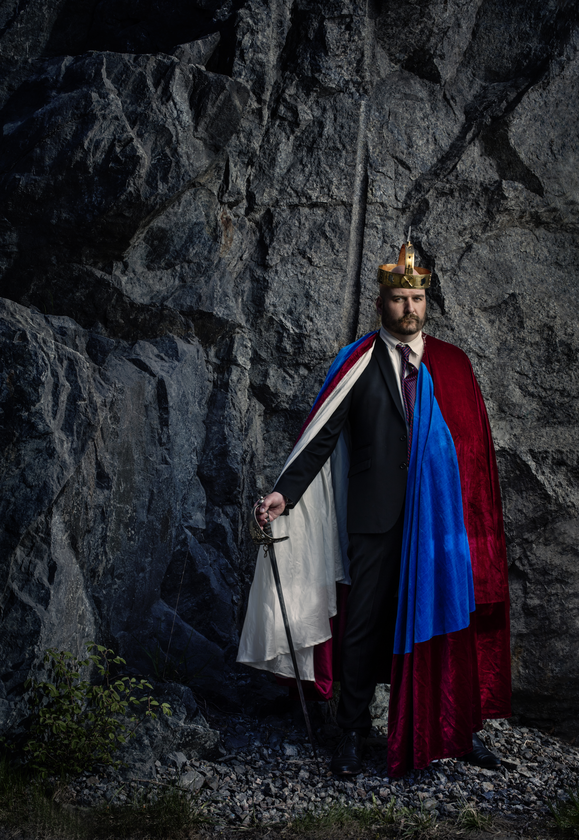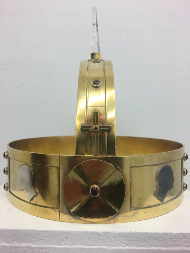 Under åren som jag vridit, vänt och experimenterat med det här kungariket har jag också lekt med maktsymboler. Inför det här kursen fick jag tidigt förslaget att bygga en tron. Jag började med att göra research där jag kontaktade det kungliga slottet i för att ta reda på hur en möjlig tron som jag kunde skapa skulle kunna se ut. Det visade sig att den svenska rikstronen är den som byggdes för drottning Kristinas kröning, Silvertronen, alltså dottern till Gustav den II Adolf, min pappas besynnerliga val av hjältebild på väggen i biblioteket. Efter att jag gjort ett skissarbete har jag med hjälp av konstnären Johan Wiking låta bygga en egen tron, på något sätt den ultimata maktsymbolen.