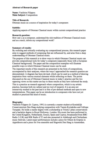 Title of Research: Ottoman music as a source of inspiration for today’s composers