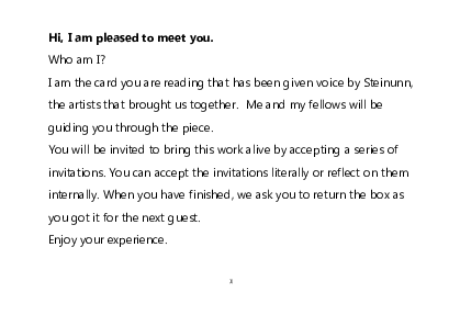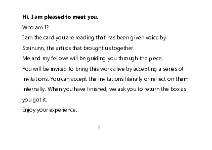 I am the card you are reading that has been given voice by Steinunn,