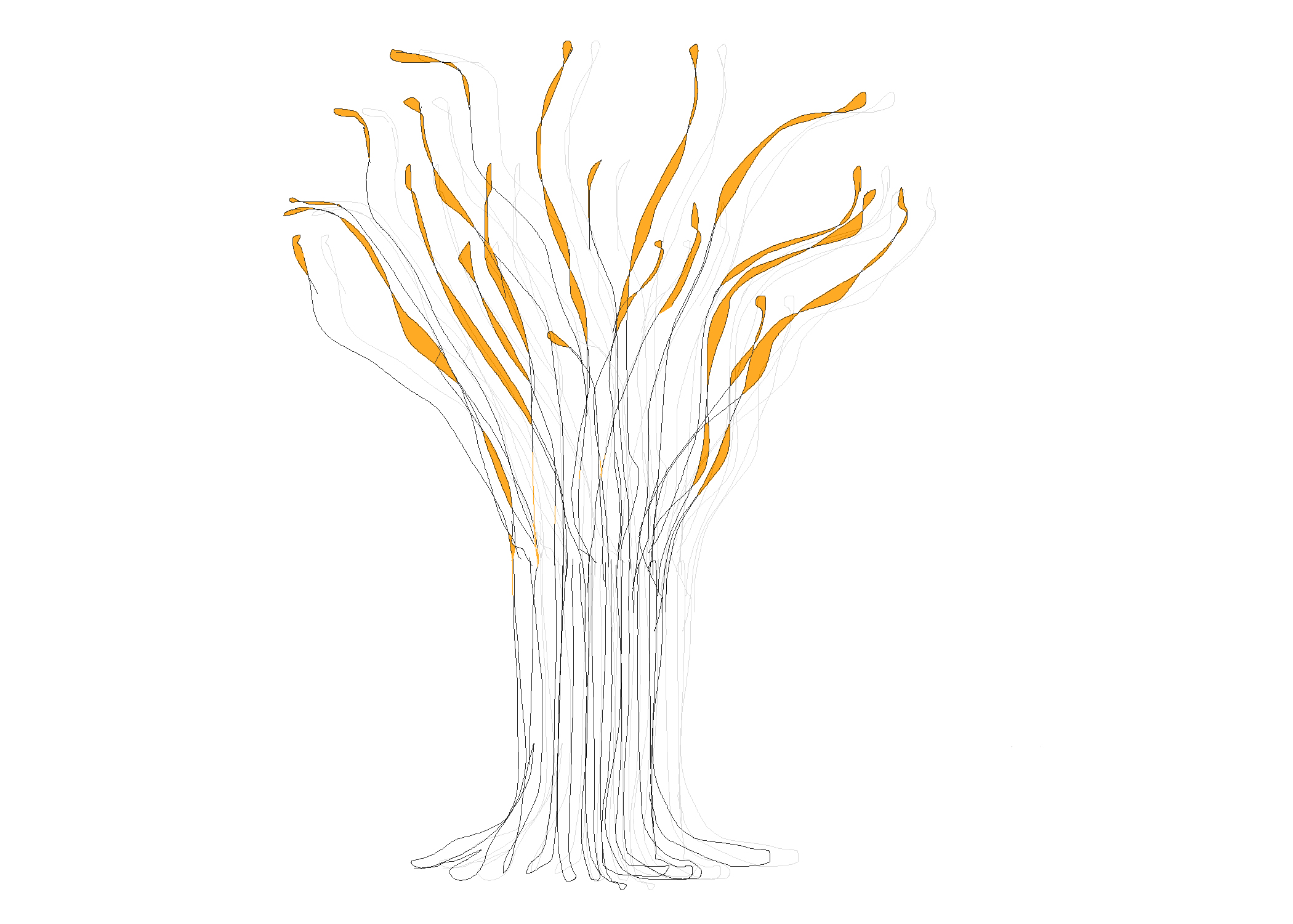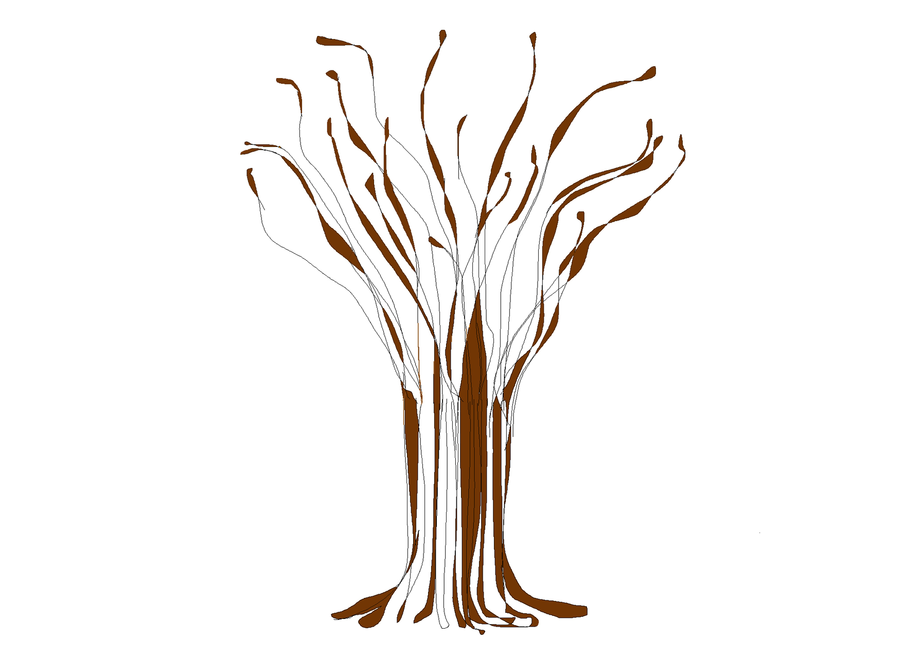 I walk over to the table and see a brown tree. The student pulls his head up, looks at me, and points to his drawing, saying,