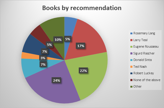 The books by Rousseau and Rascher were recommended most often which was unsurprising as their names are the most well-known on the list. These books are also the oldest of the seven and as the first people to widely spread the use of the register they are considered by some people to be the first point of call.