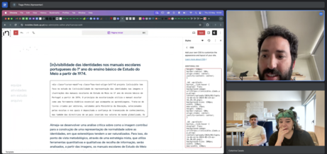 - Encontro com a professora Ariana Furtado e conversa sobre: a relação com imagens de manuais escolares; a importância da/do docente na forma como aborda os assuntos para o desenvolvimento de uma consciência crítica; o projeto anti-racista desenvolvido na escola.