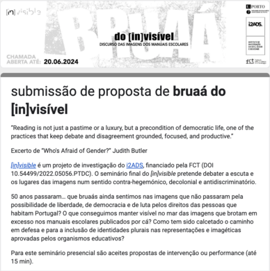 bruaá do [in]visível: discursos das imagens dos manuais escolares (18-19.07.2024). [Seminário final]. FBAUP, Porto, Portugal.