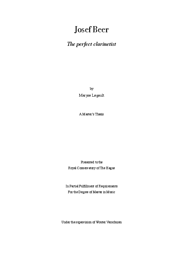 Name: Maryse Gagnon-Legault Main Subject: Historical Clarinet Research Supervisor: Wouter Verschuren Title of Research: Josef Beer - The complete clarinet virtuoso Research Question: What was the importance of the 18th century clarinetist Josef Beer and what made him stand out as the first international virtuoso on the clarinet? Summary of Results: The history of music is punctuated by the rise of crucial players who, by force of skills, influenced the work of composers, brought their instrument to technical improvement, pushed the boundaries of musical possibilities or just popularized a specific way of playing. One player did all those things at the end of the 18th century with the use of his instrument, the clarinet. Although mentioned in all history books about the clarinet, today’s scholars have done little research on Josef Beer. However, when looking closer at Beer’s life, repertoire and works, we notice how much he had the chance to be at the right place at the right moment. A known teacher of many of the greatest clarinet virtuosi, such as Michel Yost and Heinrich Baermann, he had influenced a generation of young musicians, popularizing his instrument all over Europe with his extensive tours. But what do we really know about Josef Beer and what made him stand out to become such an influential musician? This research is about the life and works written for and by this intriguing man, as well as a reflection on the general implication of the soloist in clarinet concerti and how the music he played became extremely personal, by the addition of unique ornamentation and variations of the “skeleton” - the score - made by the composer. Mainly biographical and historical, this work aims also to approach Beer through the performances of works by composers gravitating around him, including his own compositions. Biography: Maryse Legault is currently pursuing a Master’s degree at the Koninklijk Conservatorium Den Haag in historical clarinets in the class of Eric Hoeprich. During her studies in the Netherlands, Maryse has had the opportunity to perform with many ensembles as a soloist, as well as an orchestral and chamber musician, in various countries including France, Belgium, Germany, The Netherlands and Russia. Curious to approach different repertoires, she focuses her research around the role of late 18th-century clarinet soloists and the birth of the pre-romantic German school of clarinet playing. Maryse holds a bachelor degree from McGill University in Montreal and plans to pursue doctoral studies next year in order to deepen her research experience.
