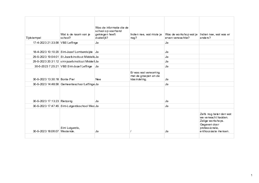 Ik maakte twee korte enquêtes om na de workshops rond te sturen. Eén enquête voor mijn leerkrachten en één enquête voor de leerkrachten van de lagere school waar we te gast waren. Die enquêtes maakte ik op google drive en stuurde ze achteraf naar de betreffende leerkrachten.