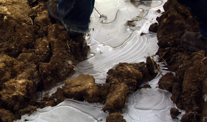 The two environments – French and Australian – were treated very differently. The Australian footage was characterised by macro perspectives and a roving ‘forensic’ eye that sought to transform visual and sonic details into psychological spaces paralleling that of the bereft man. The Mallee was depicted as devoid of human life while the ‘absent’ man searches a country that is not his own. The French footage, meanwhile, was more controlled, objective, and conventionally ‘cinematic’. The Mallee was shot in the red sun of forty-plus degrees whilst Fromelles was filmed in the soft winter light of sub-zero conditions. The work contrasted these environments, summer and winter, north and south, to express the impossibility of bridging the gap between the present and historical moments.