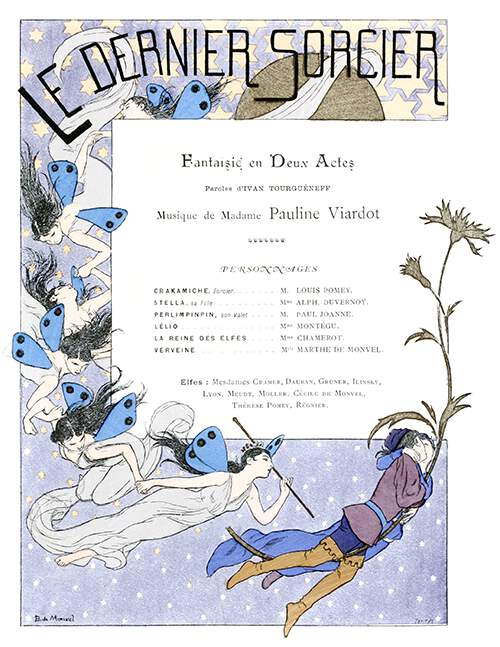 Pauline made her concert debut as a singer at 16 years old and her operatic debut as Desdemona in Rossini’s Otello two years later in London. In Paris she met the theater director Louis Viardot (1800-1883) whom she married in 1840. Their house in Paris became an important centre for writers, musicians and artists, including George Sand, Chopin, Turgenev, Clara Schumann, Berlioz, Gounod, and many others. In 1863 Pauline retired from the stage and the Viardot family however moved to Baden-Baden to escape the regime of Napoleon III. Finally, in 1871 they returned to Paris, where Pauline stayed for the rest of her life while teaching and composing.
