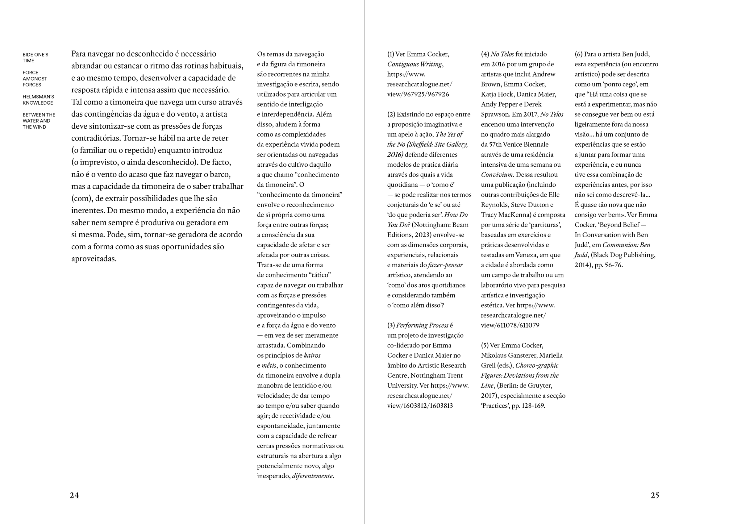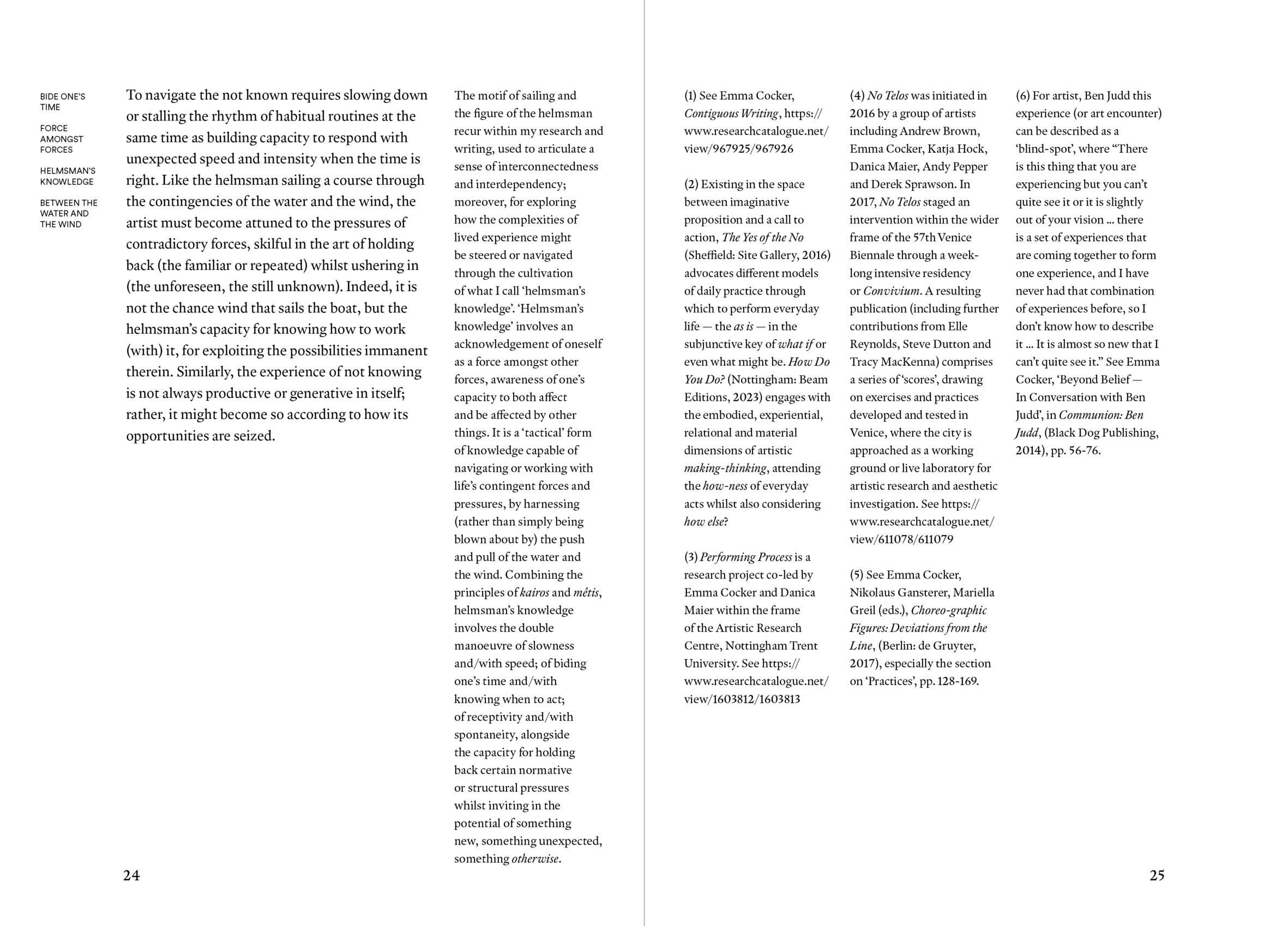 This research exposition is conceived in conjunction with the publication, Artistic Research Does #7 (2023), which presents a translation of Emma Cocker’s essay ‘Tactics for Not Knowing: Preparing for the Unexpected’, originally published in Elizabeth Fisher and Rebecca Fortnum, (eds.) On Not Knowing: How Artists Think, (Black Dog Publishing, 2013). See https://i2ads.up.pt/publicacoes/artistic-research-does-7/ In addition to the translation and re-publication of the original text, the revised version of ‘Tactics for Not Knowing’ in Artistic Research Does #7 offers two further interventions in the form of annotations. In one column of margin notes, Cocker shares additional reflections, referring to some of her more recent artistic research projects and collaborations that continue to resonate with the concerns of the original text. In parallel, a second column of margin notes comprises the titles of additional pieces of contiguous writing drawn from two collections of Cocker’s writing, The Yes of the No (2016) and How Do You Do? (2023). Within this online version these margin notes include hyperlinks that enable the reader to access these different thought-fragments of writing. Artistic Research Does is edited by Catarina Almeida, André Alves. Artistic Research Does is published by i2ADS – Institute of Research in Art, Design and Society is a R&D unit based at the Faculty of Fine Arts of the University of Porto (FBAUP), financed by the Portuguese agency Fundação para a Ciência e a Tecnologia (FCT).