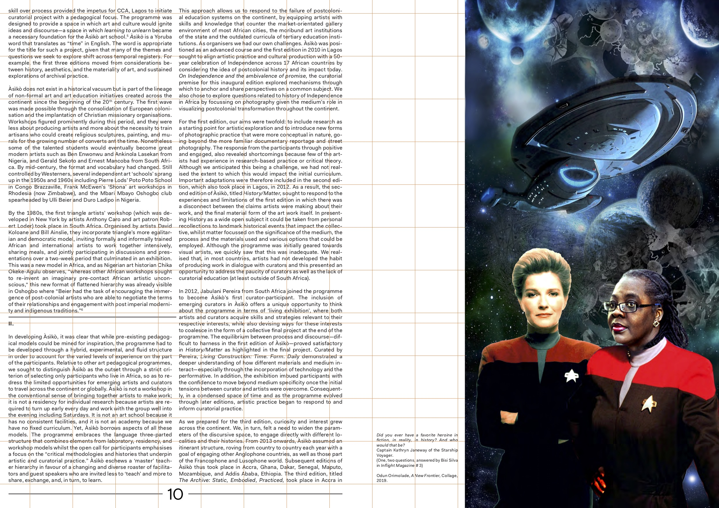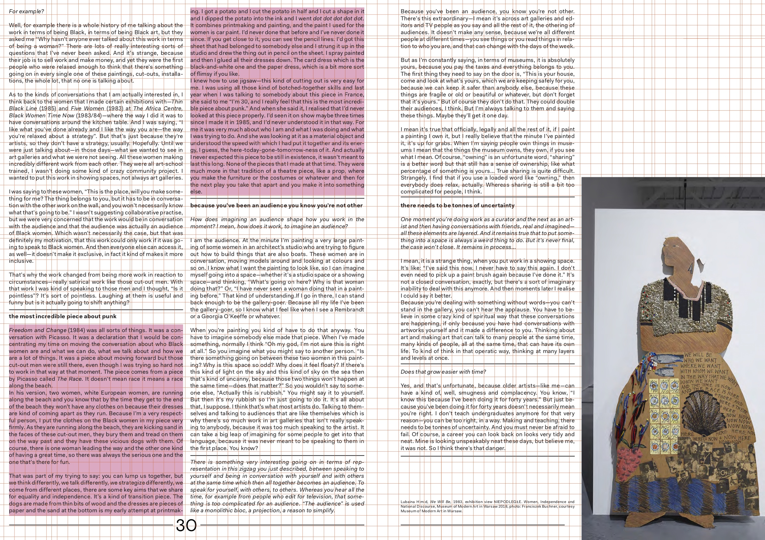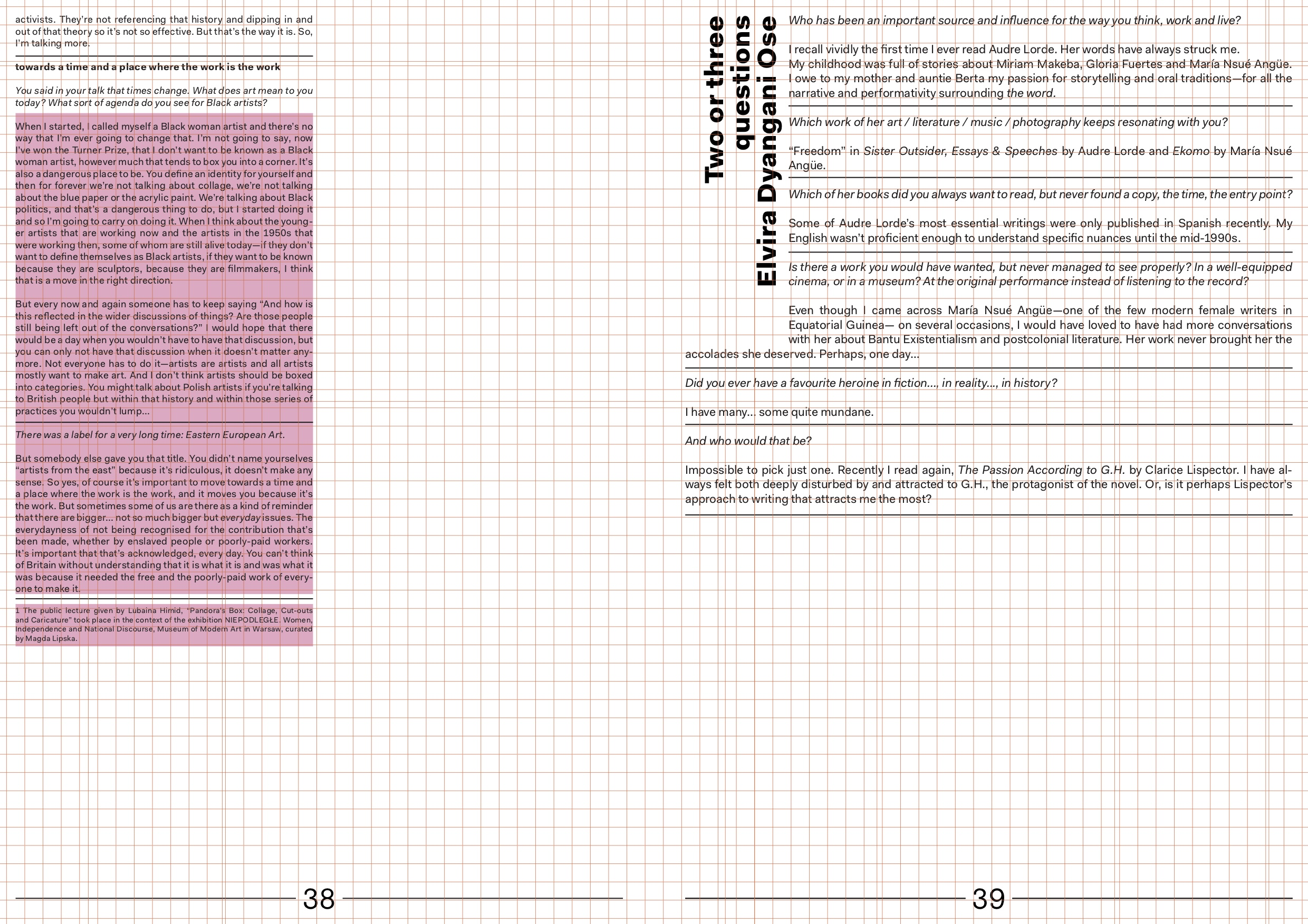 The idea of making use of spaces, transforming existing ones, creating new ones, making a living and a change, very much carries through the pages of Inflight Magazine #4. The importance to find, maintain and organise places, frameworks, and opportunities that allow for a continuity to negotiate, dispute, struggle over common grounds. Making spaces vibratory. With stopover conversations in Warsaw and London, thinking of the wonderful Bisi Silva who passed away while assembling this issue.