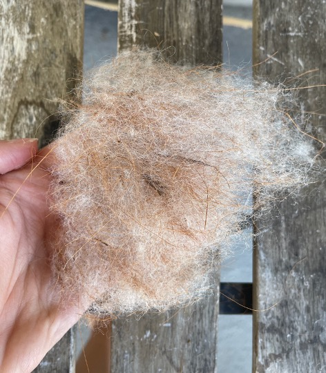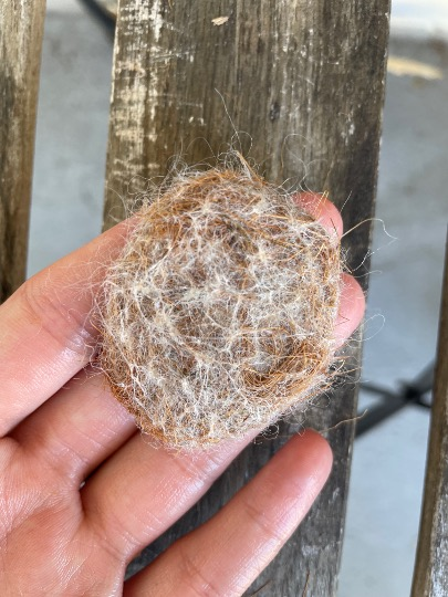 Although I used more wool than pine fibers, in the end, pine fibers dominated the appearance and the texture.
