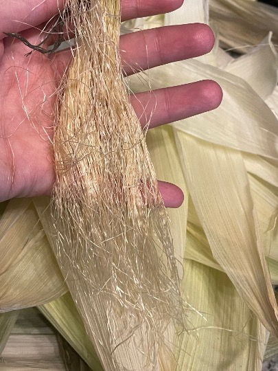 I picked these up when I had a sudden realization while cooking corn. Once you start looking for fibers, you can see them everywhere. Later, I learned that making sustainable textiles with cornhusk fibers has been going on for a while.