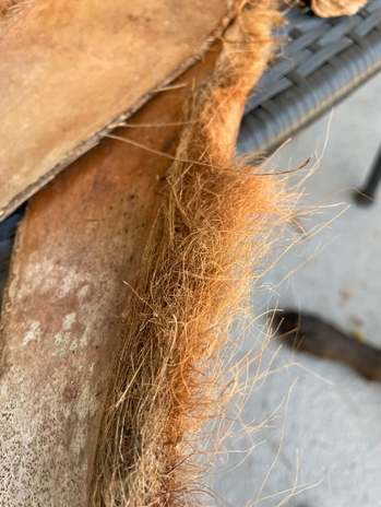 Collected from two coconuts. Both had been beaten by the sun and were already showing their fibers.