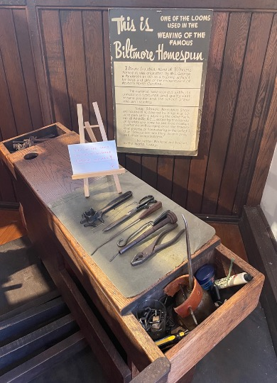 BILTMORE INDUSTRIES HOMESPUN MUSEUM exhibits tools, looms, samples from the weaving factory that was founded in 1905.