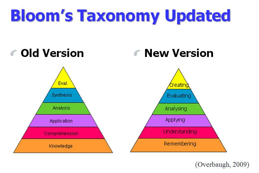 Het grote verschil tussen de update zit in de top van de piramide. Creëren is een nieuwe stap. Dit vind ik wel een goede toevoeging en gaat dieper in op de kennis dan in het oude model. In het oude model kon je een reproductietoets of examen opstellen om in orde te zijn voor de inspectie. Nu moeten de leerlingen in staat zijn om effectief iets te doen met de leerstof. Ofwel creëren ze er een nieuw werk mee ofwel nemen ze een visie in met integratie van de leerstof.
