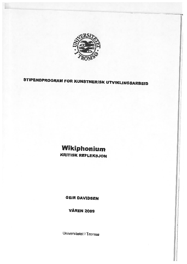 Wikiphonium (wikiphonium.org) was carried out as an artistic research project by Geir Davidsen as research fellow, within the framework of the Norwegian Artistic Research Fellowship Programme in 2005–09. The project was designed to explore and develop new contemporary playing techniques for brass instruments through commissioned works for the euphonium. This exposition is the result of the authors’ longstanding joint interest in and discussions about the artistic research domain. Davidsen is the primary creator and performer of the Wikiphonium project. Blix’s role in the progress of the project has been as a research peer, advisor, conversation partner, and critical listener.[2] Blix and Davidsen’s collaborative writing of this article can be regarded as an articulation of reflective processes related to the Wikiphonium project, outlined as a discussion in dialogue with works and writings in the emerging field of artistic research. The collaboration has consisted of discussions between Blix and Davidsen, some of which were recorded, joint music listening and shared literature readings, and an open-minded attitude toward different ways of thinking and expressing opinions. The aim of the dialogue between the authors was to use each other’s creative understandings as tools for critical reflection.