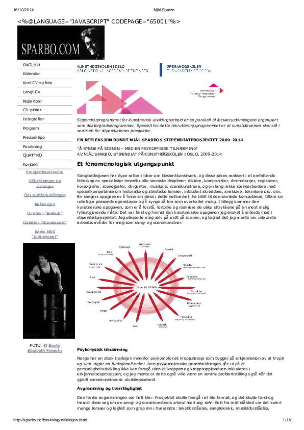 Etter 18 år som utøvende sanger ser jeg at faglig fordypning og utforskning av kunstneriske problemstillinger vil være av avgjørende betydning for min videre utvikling som sang- og scenekunstner. Sangkunst fordrer både kunnskap og ferdighet, og en eventuell utvikling involverer både kropp, sjel og sinn. Jeg er derfor overbevist om at en ressursorientert psykofysisk tilnærming er nødvendig. Jeg vil undersøke virkemidler som bidrar til økt selvinnsikt og kroppsbevissthet og til å avdekke funksjonelle blindsoner.