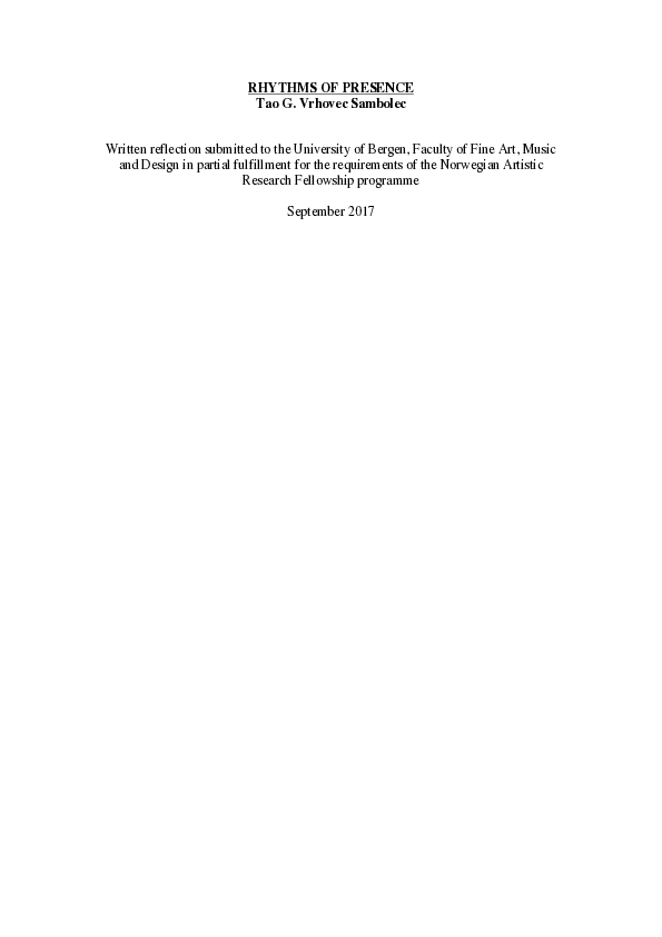 My proposed artistic research project aims to explore this current situation by focusing on invisible manifestations of presence, in particular the rhythms of bodily movement and mental activity. These will form the basis for developing tests aimed at exposing the gap between remote and felt presence, and how related temporalities can act as material for artistic work.