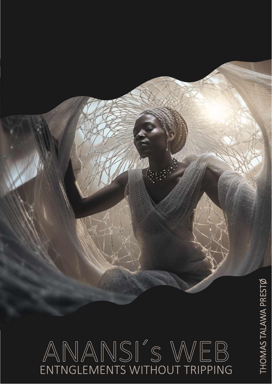 Anansi’s Web - Entanglements without Tripping, an artistic research fellowship project led by Thomas Talawa Prestø, delves into the intricate weaving of African Diaspora practices and praxis. This exploration uses several conceptual tools to examine how performance can catalyze personal, social, and communal transformation. At its core is ChoreoNommo, a praxis grounded in the African concept of Nommo, which emphasizes the power of words and gestures to create tangible change.