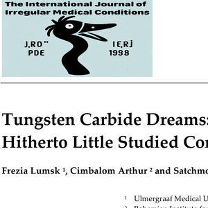 Lumsk, F., Arthur, C. and Halvbjörnsen, S. (2023). Tungsten Carbide Dreams: Unprecedented Proliferation of Hitherto Little Studied Condition. International Journal of Irregular Medical Conditions, 17(3), pp.17–21.