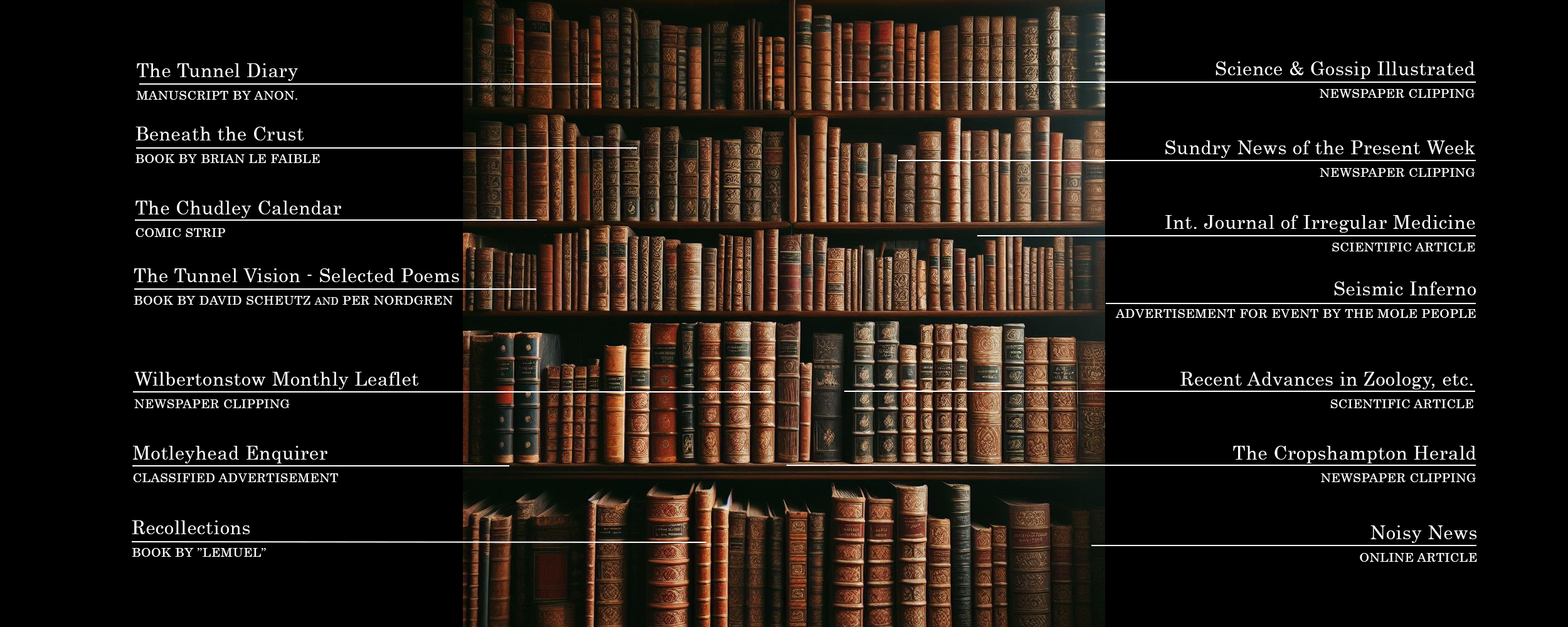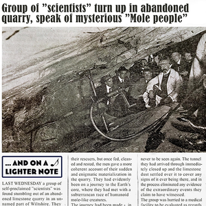 Editor, P. (1929). Group of ‘Scientists’ Turn up in Abandoned Quarry, Speak of Mysterious ‘Mole People’. Wilbertonstow Monthly Leaflet, 3 Apr., p.1.