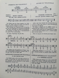 More recent methods, like the methods by Hirzel (1959) (45) and Längin (1974) (46) have a more cellistic-logical build-up, with short songs (sometimes even with text) and exercises in a technically logical order. But again there seems to be no intention to work on the general musical development, on the contrary: Längin states in his preface: “[...]kann man doch voraussetzen, daß ein 12-13 jähriger Schüler – nur in Ausnahmefällen wird man früher beginnen können – das Wesentliche über Noten, Notenwerte, Versetzungszeichen, Intervalle, Tonarten, Rhythmus usw. weiss, vor allem dann, wenn er sich für den Violoncello-Unterricht entscheiden hat.”