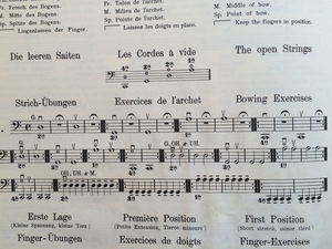 All these early methods have a subject-logic approach, and start from a more theoretical point of view. For instance, in rhythm: they all tend to start with teaching the whole note, and then divide it into half notes, quarter notes etcetera. Melodically they start with explaining the notes and fingerings in C major, giving all notes either at once, or start from the first to the fourth finger. Again a subject-logic approach, but not at all a cello methodological approach, or a developmental approach. Feuillard even gives his reasons: “[…]and as the cello cannot be taught without the help of a teacher, we have carefully eliminated all that generally fills useless methods: that is to say: the musical theory that belongs to the teaching of solfeggio” and “Therefore, that the pupil may quickly acquire the necessary skills for playing the cello well”. (44)