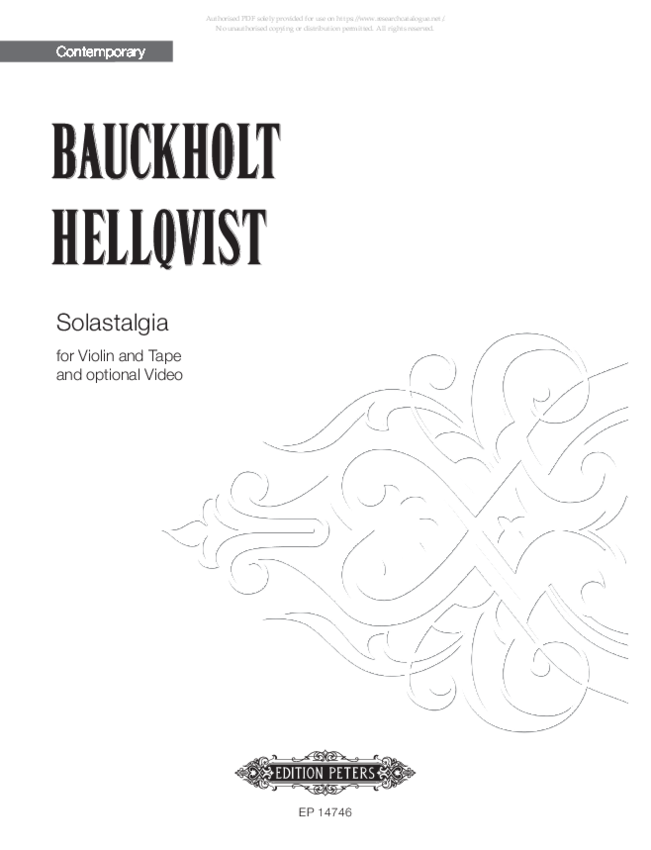Solastalgia, composed by Carola Bauckholt and Karin Hellqvist is a work for violin and electronics with and an optional video by Eric Lanz. The work on Solastalgia took place during the years 2020–2023 and the first performance was held at rainy days festival, Luxembourg 2022 (version without video) and Wittener Tage für Neue Kammermusik, Germany, 2023 (version with video).