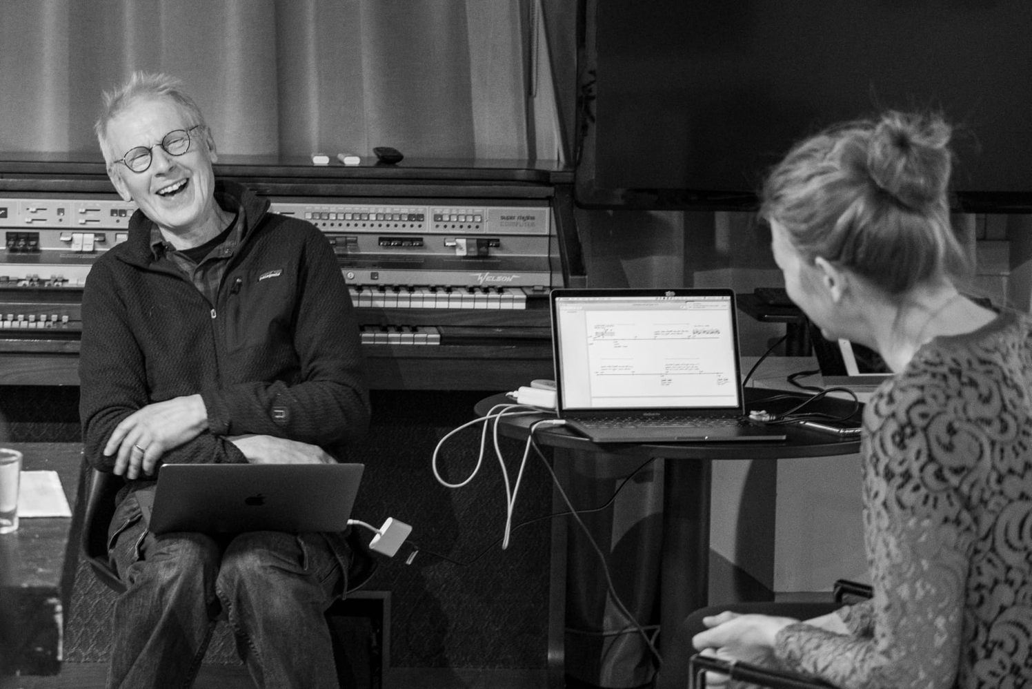 Henrik Strindberg and Karin Hellqvist at a presentation for the Swedish Society for Composers, 2024.