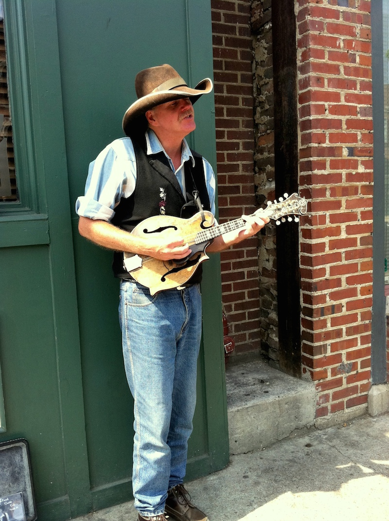 Another significant but marginalized player in this field is the busker or street performer, ubiquitous on Nashville’s sidewalks day and night. In a standard form, these musicians operate outside of traditional capitalist venues in front of which they often stand and sing. Unlike many other cities, however, their styles often align coherently with the commercialized music being sold just a few feet away. A veteran busker, who has played mandolin in a single spot near the iconic Robert’s Western World for over 10 years, talks about his experience in both nostalgic and hopeful terms: