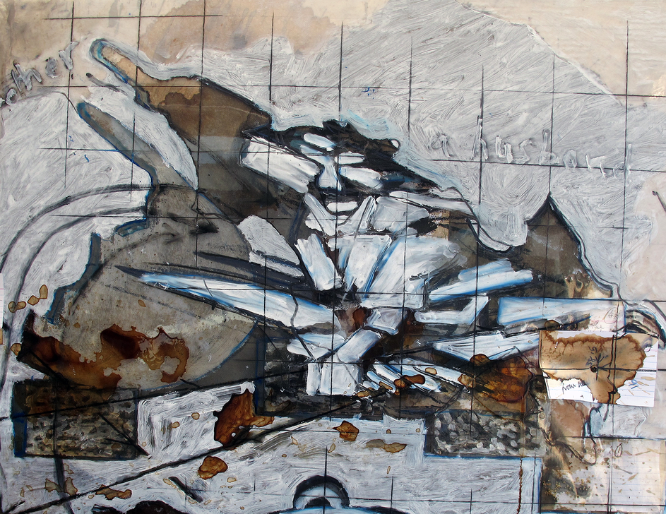 The new arrangement of the maps accepted, delineated in compressed charcoal and paint in with white acrylic primer where the oceons occur