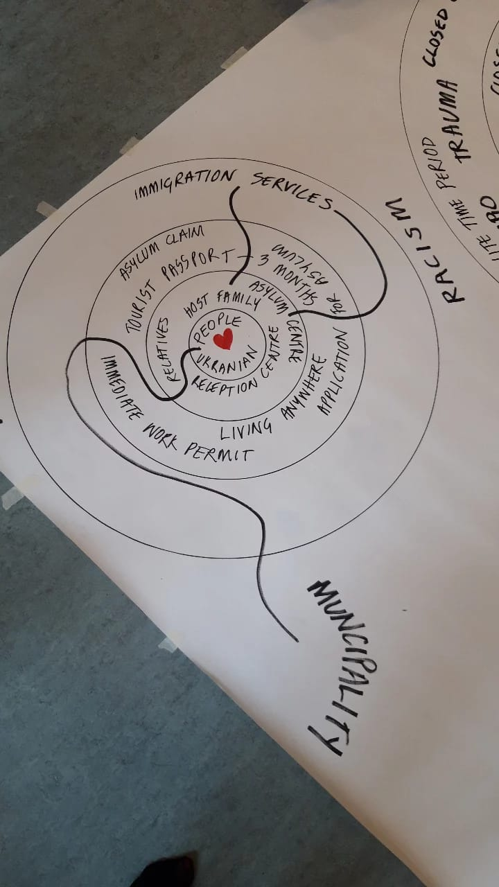 Harvest of the workshop Massaging the Asylum System: A collective exploration. Trampoline House, Copenhagen, 20-22 May 2022. Curated by Carlota Mir and Sara Alberani. With Project Art Works.