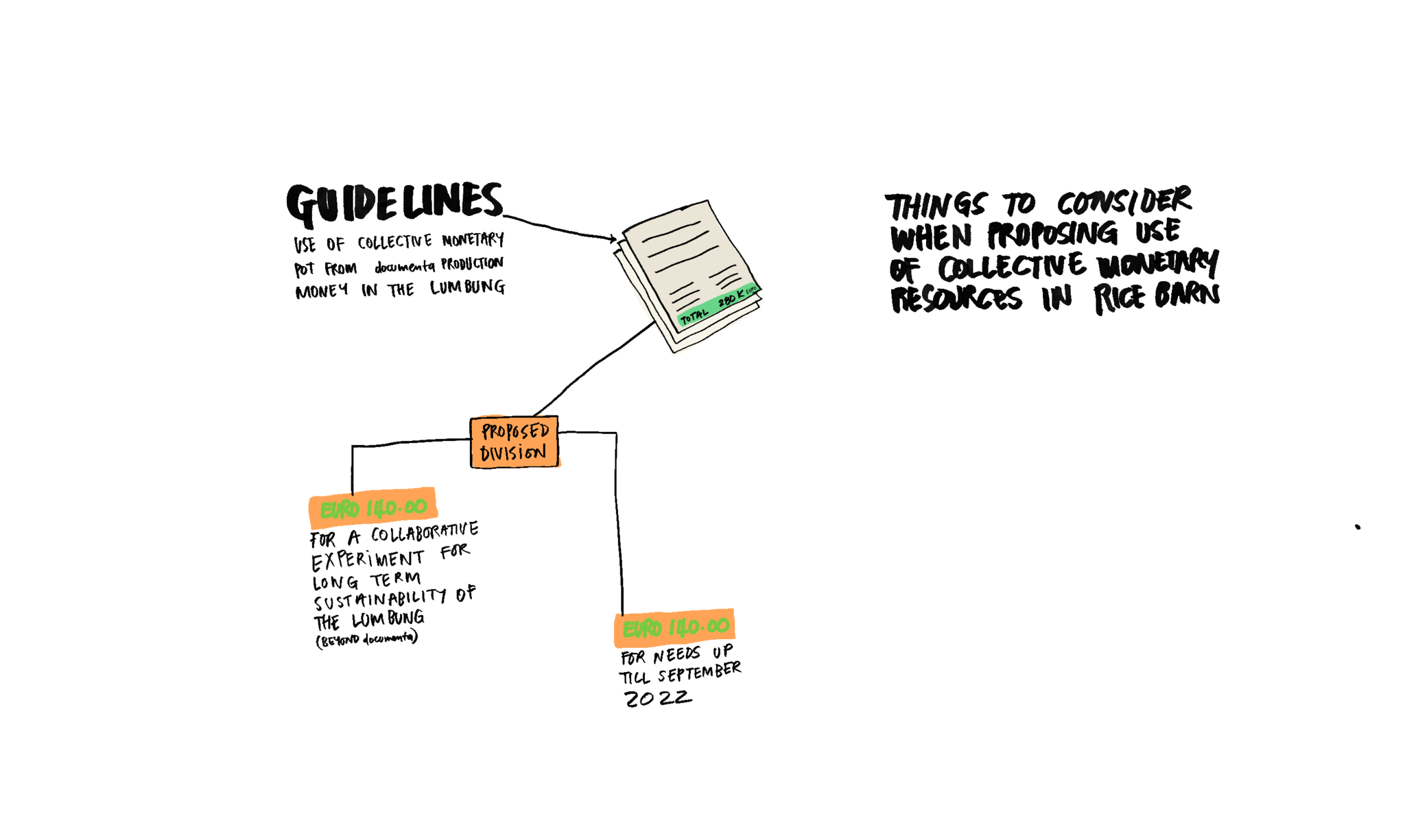 3. To experiment with our interdependency and values: if an individual lumbung member is in need, how can we support them through non-monetary and monetary resources in the collective rice barn?