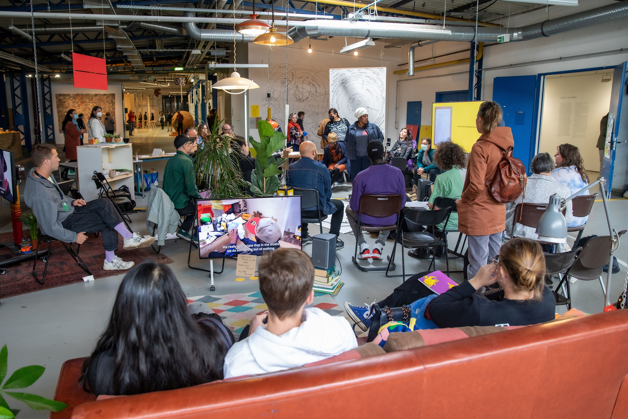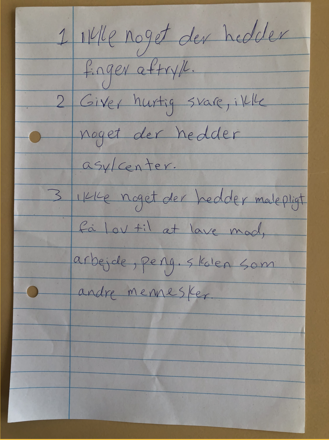 After dinner, our teams got to work. I was very happy to see Anna so involved in the workshop and the topic of asylum. She shared a reference with Shakira: Wendy Ewald, American artist who has been working with refugees in Calais. Shakira said she’d look it up. They made a shopping list: they'd be cooking together to make lunch for everyone today. It’s vegetarian, and Anna showed meticulous care and interest in choosing ingredients, making sure that everybody can eat, whatever their requirements. Shakira and Anna only met this week, but I’m delighted to see their complicity radiate out to the table. Anna compliments Shakira’s rich English, and Shakira explains how she basically learned it in the camps to survive, because she had to spend ten years there. Camp English, they called it - now, we also call it Trampoline House English. The two women are only some years apart, but their lives seem to have been very different, in many ways. Anna is here with her parents, who came to support her as she delivers on her role as Project Art Works artist; at one point, her mum sweetly reminded her that it was getting quite late and rest is fundamental for her, and she agreed and eventually left, because today will be a long day and it’s difficult for somebody with autism to be ‘on’ for sixteen hours straight. Shakira is here with Taufiki, her 14 year old son, who I’ve recently seen grow from a sweet lovely kid to a mysterious and cryptic teenager who obviously does not want to be in this art thing for a week, but he knows that it’s time to follow mum and so he does, collapsing onto every soft surface he comes across throughout the day and frequently checking his tiktok.
