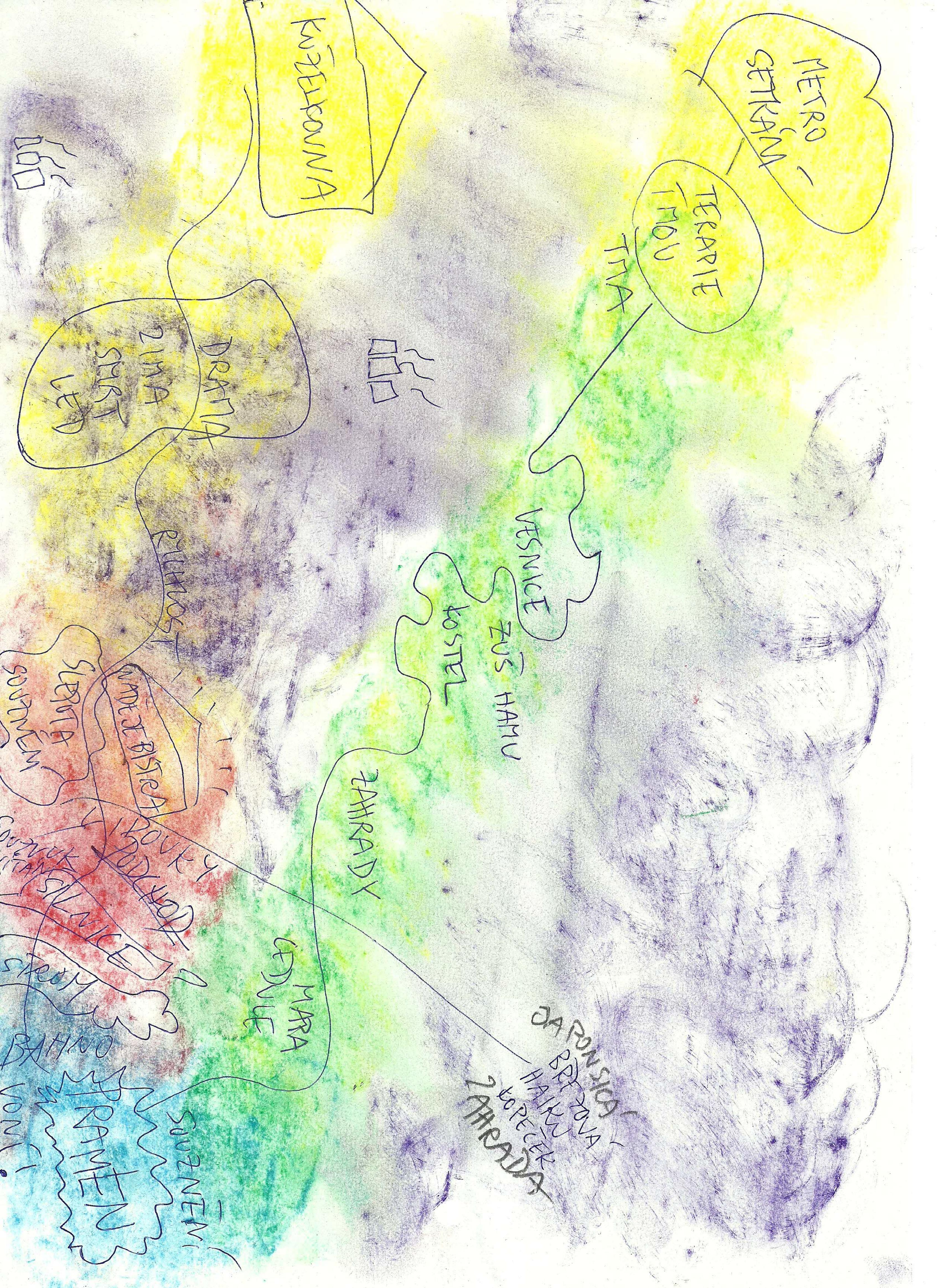 Before the workshop, Wacław Sobaszek invited the participants to bring to the workshop “a text, a poem, prose, a recording of a dream, a sentence they had heard somewhere, a message from the media, an idea they had written down, or a reflection of someone they had met on the street.” They were to “try through traditional and composite music, exercises, and experiments how they would resonate in Prokop Valley, and how the echoes of the valley and the stream, the rocks or the sky would resonate in each of us” (from the correspondence with Wacław Sobaszek, author’s translation). Wacław calls these fragments pebbles, composing a mosaic in which he searches for interconnections and connections with the landscape of the Prokop Valley. Among the themes came reflections of nature, social events, dreams, personal memories – some of which appear in the above video essay.