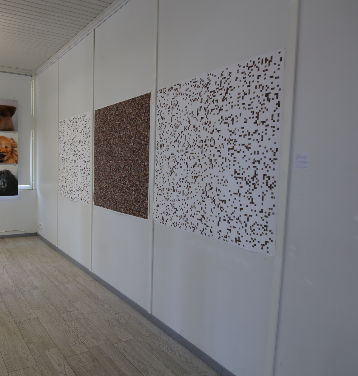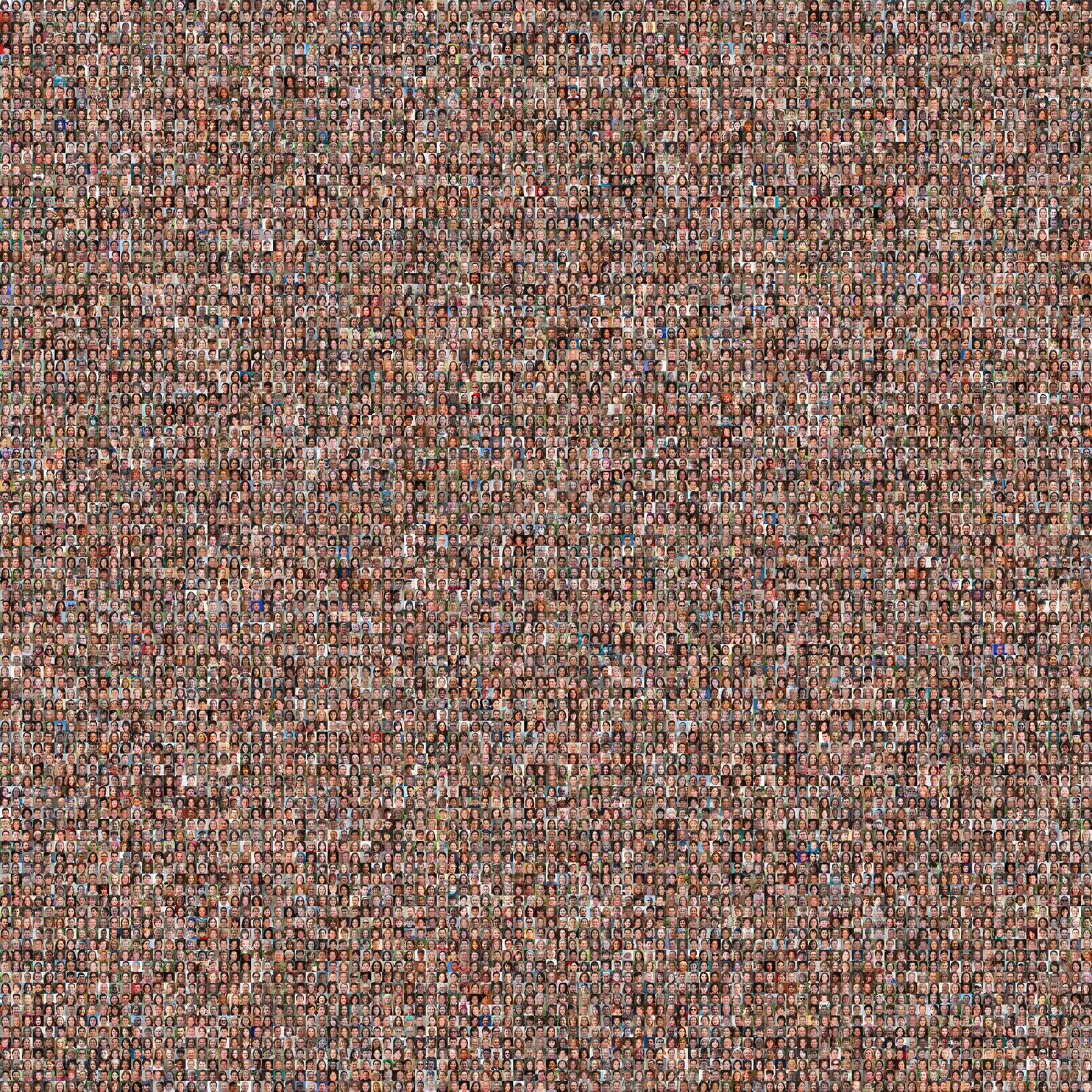 This work is an effort to visualize biases in visual artificial intelligence tools. It is presented as a tryptic, with each of the three pieces measuring 100x100cm. The central piece has a grid of 10.000 fake human faces generated by the StyleGAN2 algorithm.