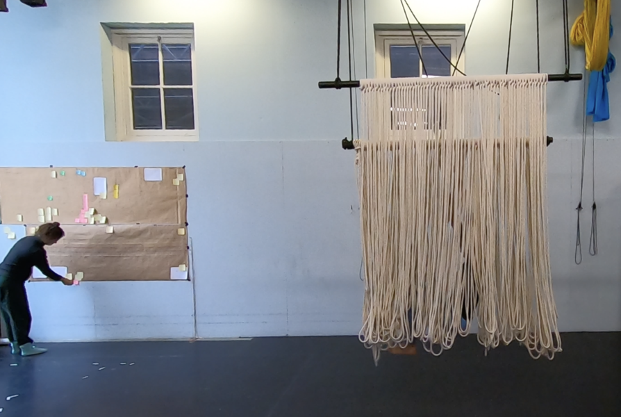 In the studio we focussed on Re/Writing knowledge. Embodied and cognitive knowledge already present in the performer and utilize that to develop movement vocabulary in this new apparatus. Skill Building is in fact starting to get to know the apparatus from scratch, without discarding the knowledge already present.