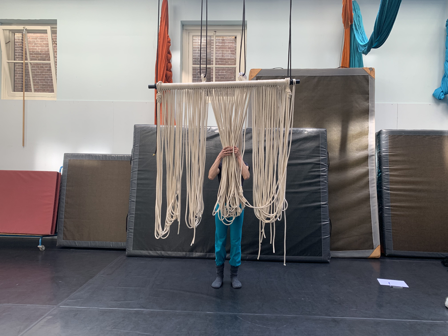 As part of the warm-up I introduced Private Time. A tool to give the performer time alone with the new apparatus. To connect to it, to connect to themselves and to understand what the relationship between them is like at the beginning of the day. Like a check-in.