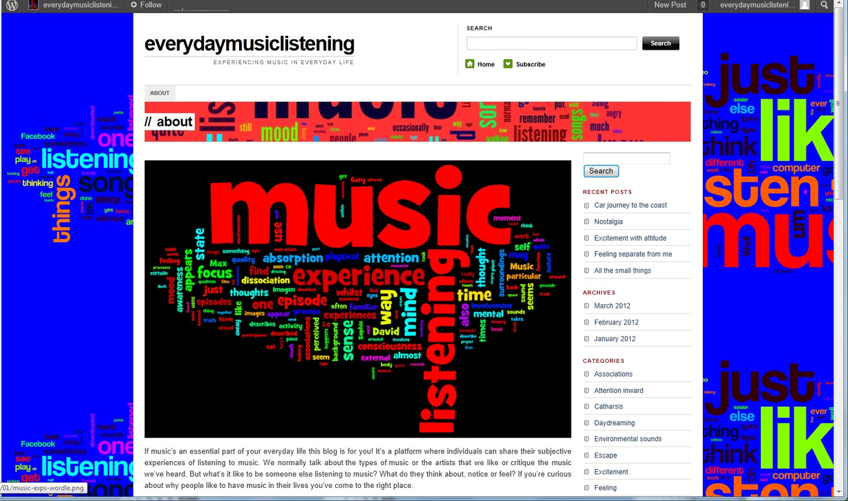 The phenomenon of “ubiquitous listening”, where source-less (recorded) and omnipresent music may pose “as a quality of the environment” (Kassabian 2001) is a familiar one. However, to describe music's experiential role in daily life as necessarily that of sonic wallpaper or background accompaniment as several studies have done, is to undervalue the potential nature of much multimodal listening and to underestimate its richness. Yet such experiences are frequently evanescent, easily forgotten, and as such are not available for conscious reflection. These factors were (in part) the catalyst for my own research concerning the subjective experience of music in everyday life.