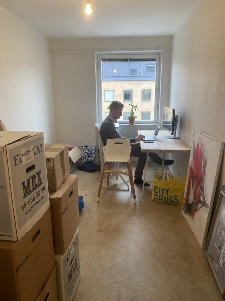 Nils, 34 år, bor med sin sambo i Stockholm. Har under pandemin flyttat från en tvårumslägenhet på 60 kvm till ett hus på 150 kvm och har därmed upplevelsen av två olika bostäder, med olika materiella förutsättningar. I lägenheten gjorde han och hans sambo inte så stora förändringar rent materiellt. Han stod i köket vid köksbänken och arbetade och hans sambo satt i vardagsrummet. Den enda nya arbetsrelaterade inredningen han investerade i var en ställning till datorn så att den skulle komma upp i en bra arbetshöjd. I huset ser det dock lite annorlunda ut och här behöver de inte sitta i de gemensamma ytorna och arbeta utan kan sitta i olika rum. De har dock ännu inte skaffat specifika arbetsmöbler utan nyttjar de möbler som redan finns i bostaden. De funderar dock på att inreda ett kontor som de kan nyttja framöver eftersom N säger att han gärna fortsätter att arbeta hemifrån även efter pandemin. Själva huset den tydligaste materiella investeringen och förändringen för Nils och hans sambo. Huset har gjort att de gått från att vantrivas med att arbeta hemifrån, till att trivas mycket bra.