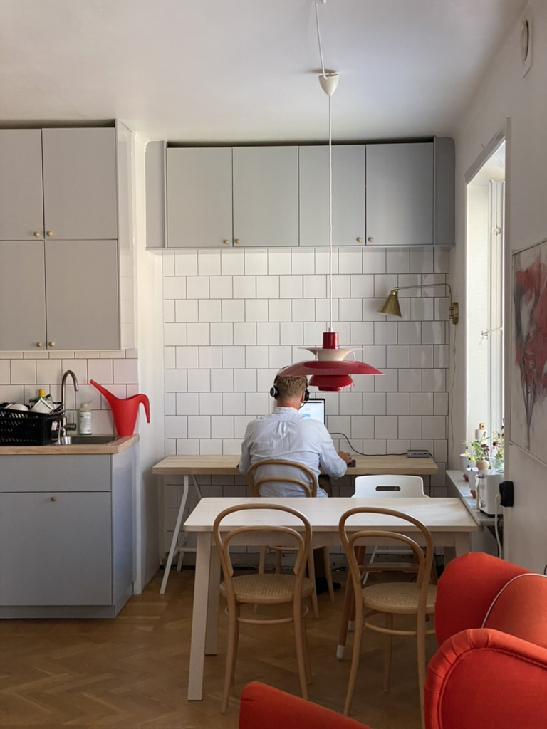 Denna text ska läsas som en första sammanställning av vad min pågående studie om bostadens omdaning under situationen att stanna hemma under pandemin visar. Jag har velat lyfta en specifik stanna hemma-situation, nämligen att arbeta hemifrån och vilka konsekvenser det får för bostadens funktion och organisering.