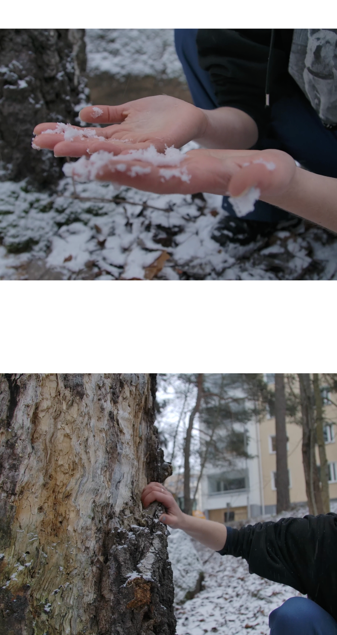 Another theoretical approach that was added to the “Parvet” concept paper was “haptic visuality”. I have been adapting the use of “haptic visuality” in my previous films and have been greatly inspired by its possibilities (Hauru, 2019). Haptic visuality is a term coined by researcher Laura U. Marks (Simon Fraser University). Marks has researched media art made by artists who represent cultural minorities, often “recent immigrants from Asia, the Caribbean, the Middle East, Latin America, and Africa, as well as First Nations makers” (Marks, 2000, 1). Marks proposes that haptic visuality is a means to preserve or “smuggle” memories of one’s culture and identity. In colonial history, power has been gained by having control over what stories are told and what imagery is shown. Conquering forces have throughout history destroyed cultural symbols, and literature, and systematically forced changes to cultural narratives. The spoken and the seen are tools for those who hold the power. Concrete objects, visual symbols and narratives can be destroyed easily. But it is more difficult to take away the memories of the body: the sensory aspects, smell and taste. The key audiovisual starting point arising from this theory was to start developing the “Parvet” film’s emotional narratives through non-visual senses: touch, smell, and taste. I didn’t have a systematic plan as a filmmaker on how using haptic visuality could benefit the project, but during the screenwriting process I kept coming back to proposing the performers, could non-visual senses be used to portray the experiences of the characters. Many of the performers were willing to take this approach as part of their characters' narrative.